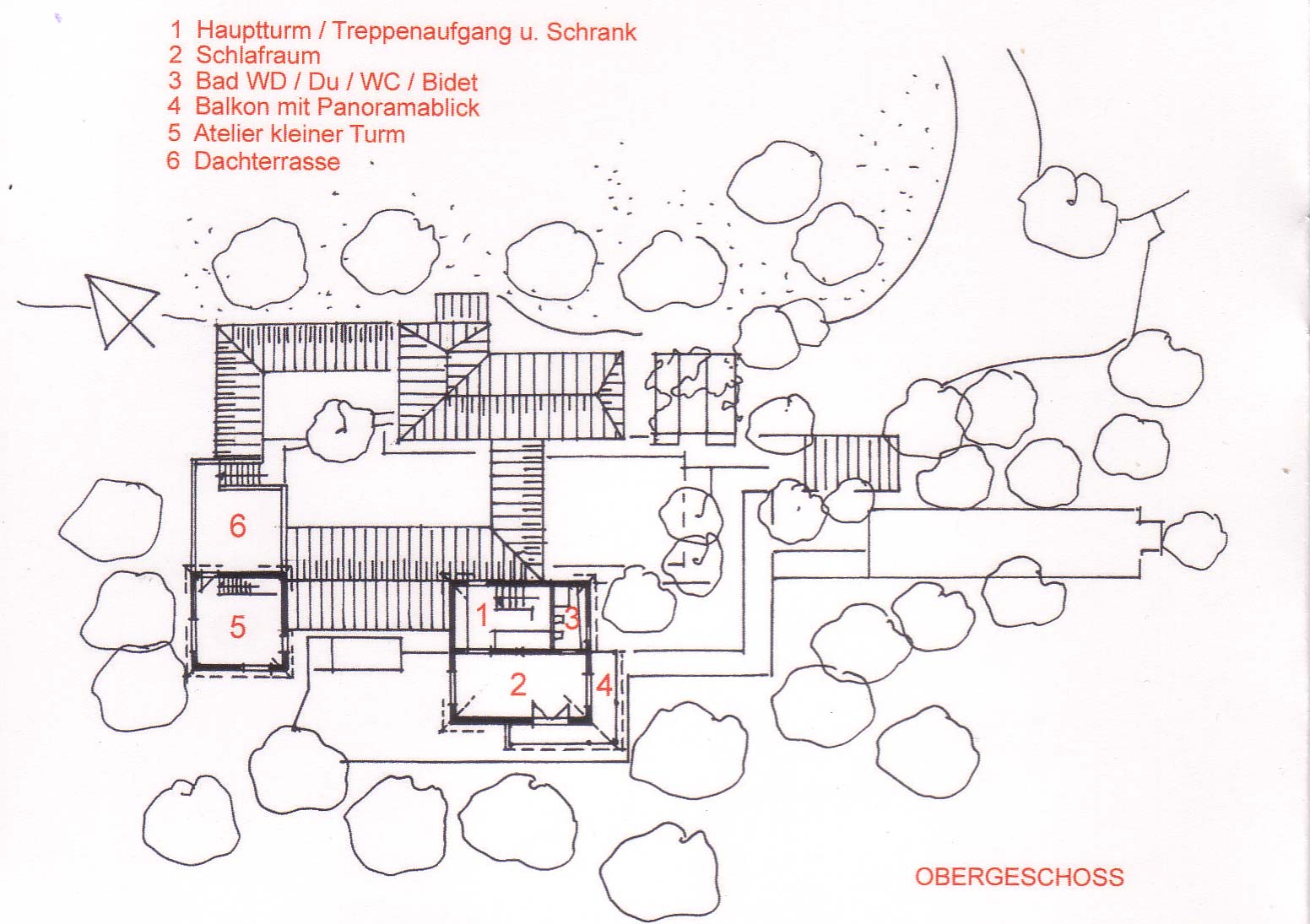 - Gästeturm mit Schlaf- und Wohnraum, Bad, Küche (auch als Aussenküche nutzbar)