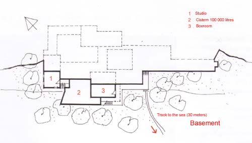 Βρίσκεται μέσα σε ελαιοπερίβολο εκτάσεως 8068 τμ., περίπου 20 υψόμετρα από τη θάλασσα έχοντας σε δυο πλευρές βραχώδη ακρογιάλι με μέσω τοιχοδομημένων σκαλοπατιών διαθέσιμη πλάκα μπάνιου.