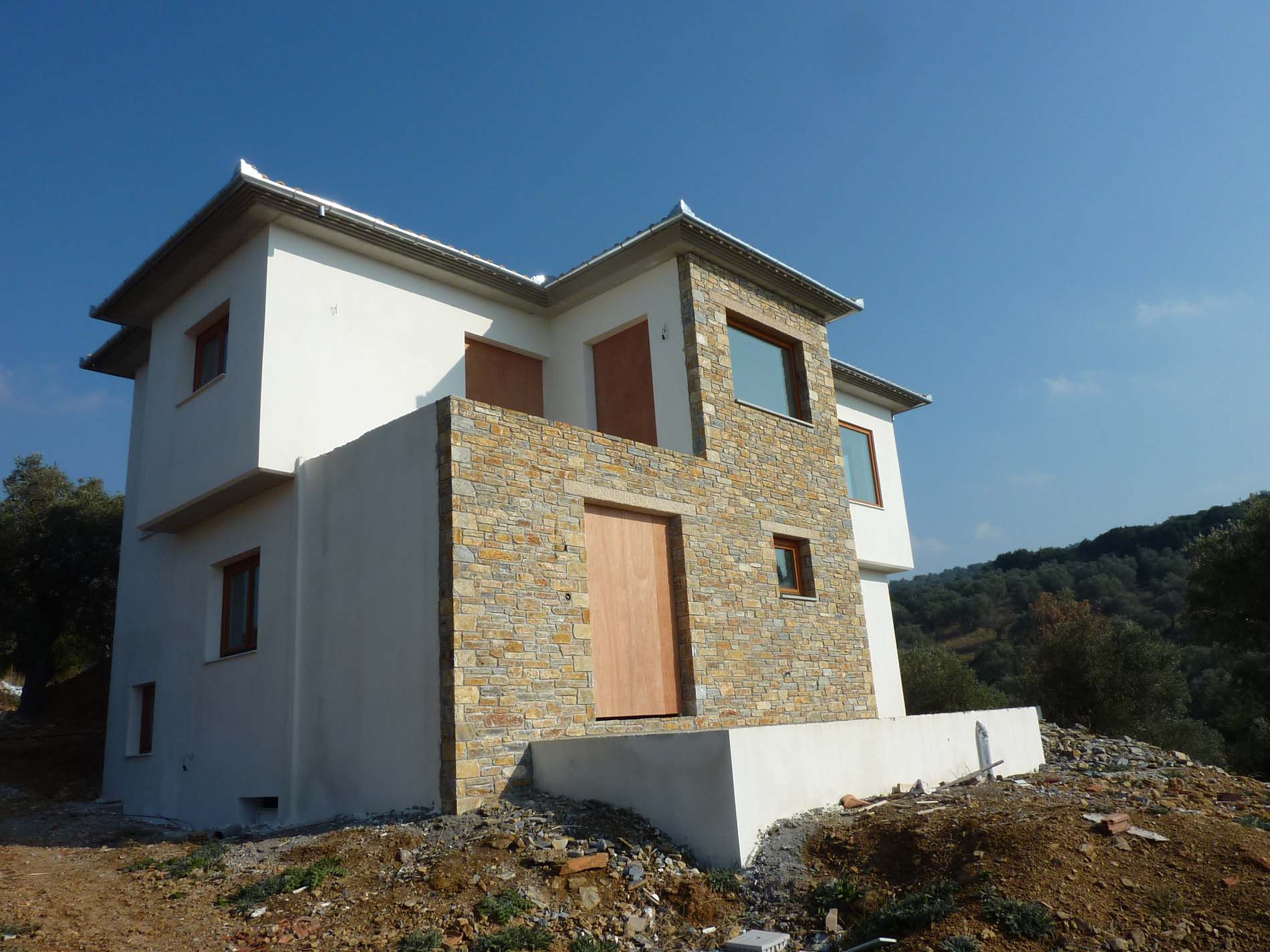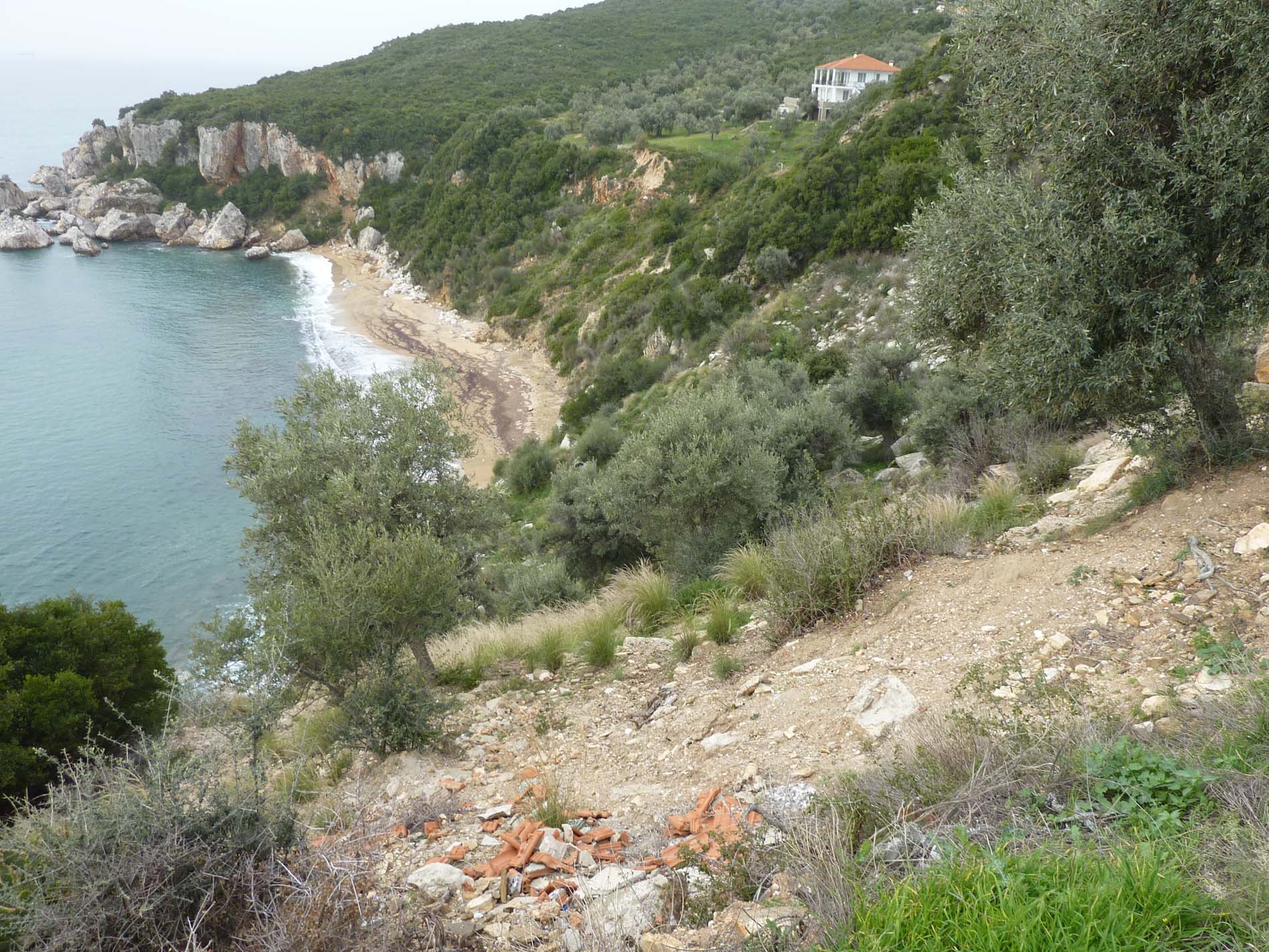 Comment: "Wir haben durch die Vermittlung von Chris ein wunderschönes Baugrundstück (Olivenhain) auf dem Süd-Pilion bei Platanias gefunden und gekauft. Er hat uns ebenfalls mit einem sehr kompetenten Anwalt sowie einem sorgfältig planenden und verlässlichen Ingenieur in Verbindung gebracht. Zeitliche Abfolge war wie folgt: Mai 2010 - das passende Grundstück gefunden. Juni 2010 - Preisverhandlung abgeschlossen. Sep 2010 - notarieller Grundstückskaufvertrag. April 2011 - Bodenaushub+Fundment. Sep 2012 - Einzug in das neue Haus. Sep 2012 - Fertigstellung der Außenanlagen (Natursteinmauern und Wege). Alles klappte wie geplant und es gab auch preislich keine bösen Überraschungen. "