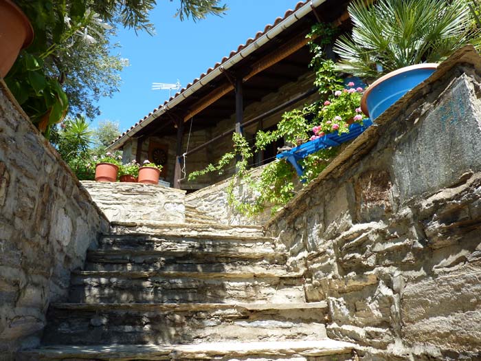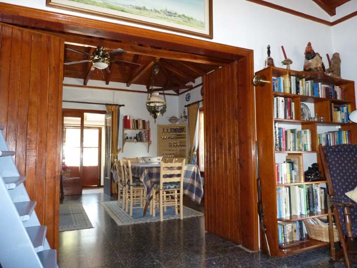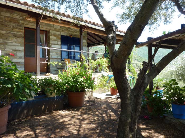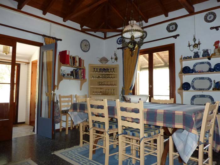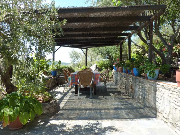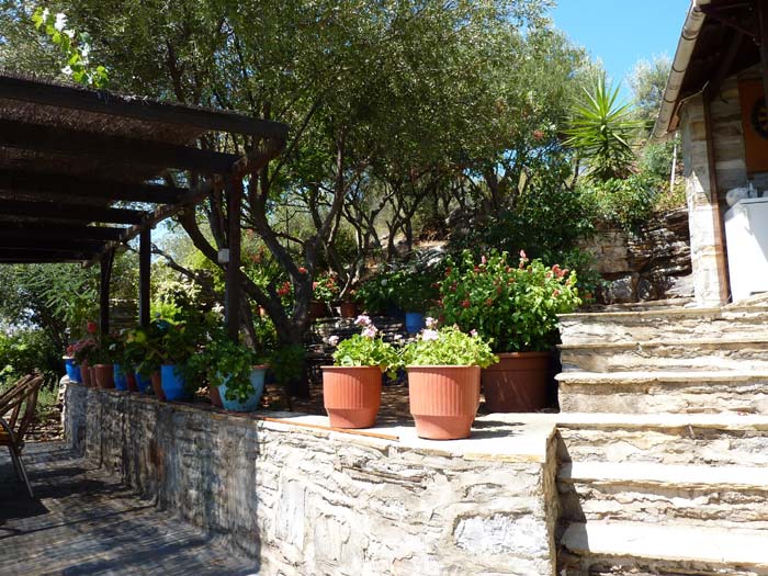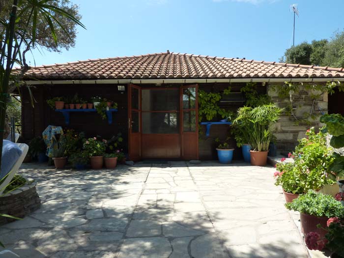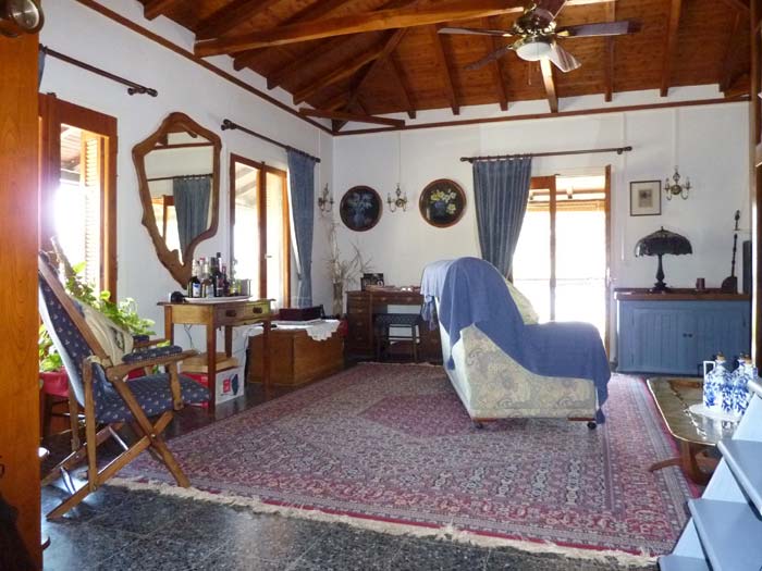 The house was built in 1975 on a 4000 sqm property within the boundaries of Milina village, i.e. One has the rights to build additional properties on the site. All in all it's a traditional Pelion Style house with it's Pelion-style stone walls, and Pelion paving stones on the terrace. The ceilings are of fine chestnut wood.